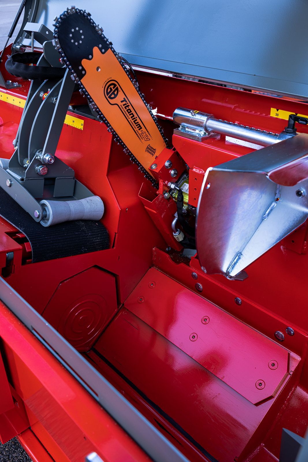 tables à journaux HakkiFeed. Conçu pour un entretien facile, le 43 nécessite un entretien minimal.Grâce à ses fonctions hydrauliques, la machine fonctionne sans courroies trapézoïdales, ce qui garantit une performance fiable et réduit le besoin d’entretien fréquent.